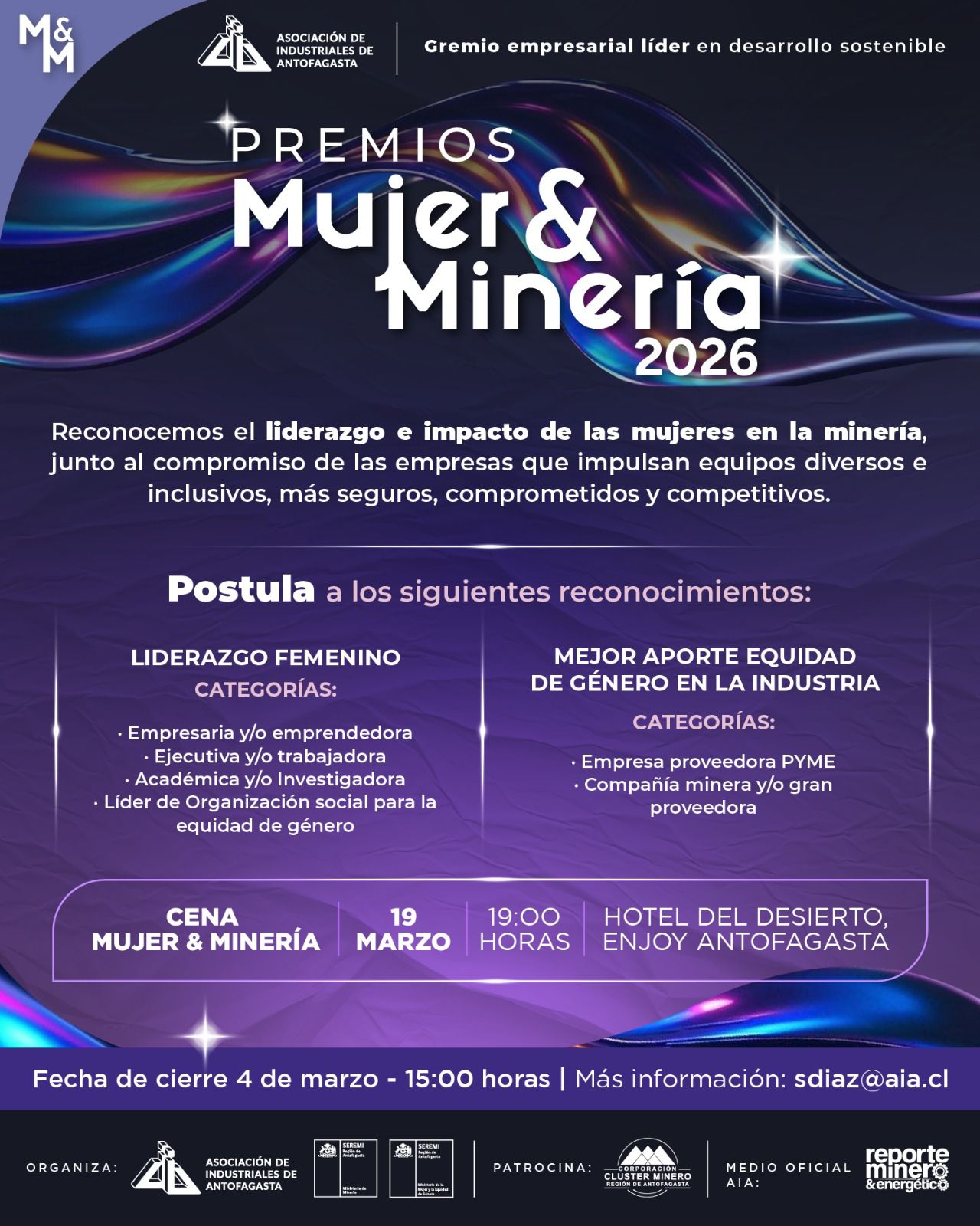 La Asociación de Industriales de Antofagasta (AIA) invita a destacar el impacto de las mujeres en el sector minero a través de este emblemático reconocimiento al talento y la equidad.