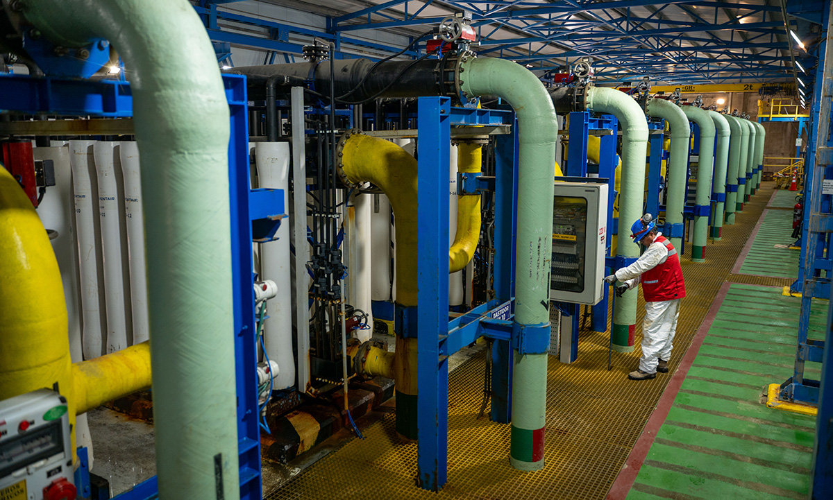 Richard Bennett, gerente de Medio Ambiente de Lundin Mining Candelaria, explica que “desde 2013 operamos la primera planta desalinizadora de la Región de Atacama, lo que nos permite abastecer el 100% del agua utilizada en nuestros procesos productivos de concentrado de cobre”.