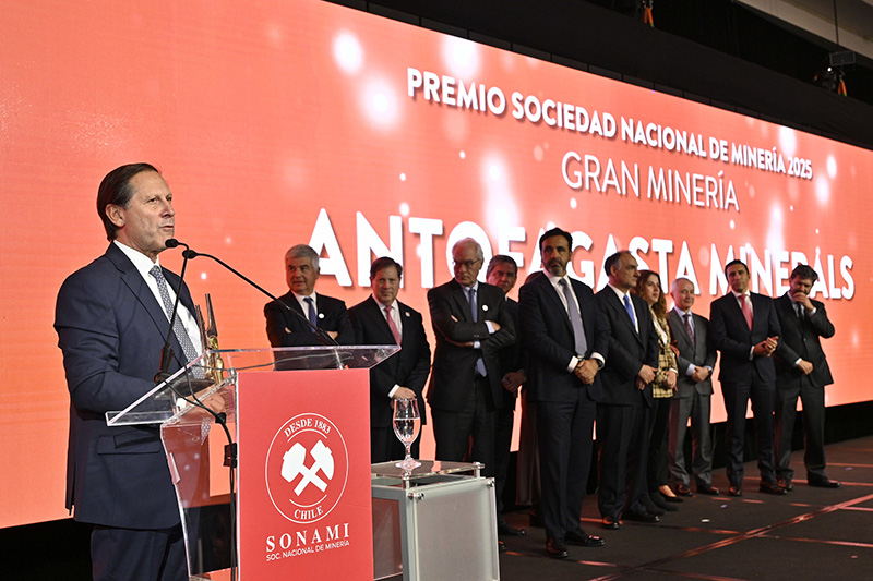 En la categoría Gran Minería, el premio fue para Antofagasta Minerals por su liderazgo en innovación y tecnología, que la ha posicionado como un referente de minería moderna y sostenible. Su presidente ejecutivo, Iván Arriagada, agradeció el reconocimiento y destacó la contribución del sector privado, que hoy aporta el 75% de la producción de cobre en el país.
